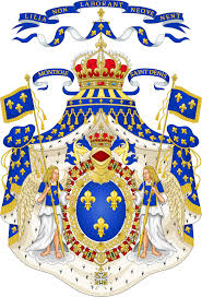 En el centro, en color azul destaca un sobre escudo redondeado con la flor de Lis borbónica, símbolo de esta dinastía que actualmente sigue presente en España, ocupando el Rey la posición de Jefe del Estado.
