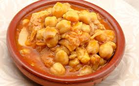 Callos con garbanzos, ensalada de escarola y granada o lombarda como acompañamiento del cordero lechal, mariscos gallegos y pescados variados como el besugo al horno.