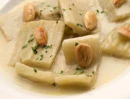 Cardo con bechamel y almendras, cordero o cabrito asado, bacalao a la riojana, albóndigas riojanas y besugo al horno o en salsa.