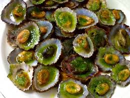 De aperitivo, es frecuente comer pata al horno o chicharrones con sal, pimienta, aceite y limón, aunque también el marisco cocido o, ya como entrante, en sopa de marisco, el puchero con hierbabuena, la sopa de picadillo.