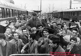 José Antonio Girón, a la sazón ministro de Trabajo, despedía importantes contingentes de trabajadores que, con contrato de trabajo, se desplazaban a trabajar a Alemania.