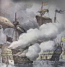 En el último tercio del siglo XVIII, los navíos de guerra a vela de dos puentes, o sea, dos hileras de cañones en cada lado, eran los de mayor utilización y solo las grandes potencias navales disponían de este tipo de buque. Eran pequeñas fortalezas flotantes con una capacidad de fuego considerable. Para poner un ejemplo, “El Glorioso”, construido en 1747, tenía 53 metros de longitud y 14 metros de anchura. Su armamento consistía en 28 cañones de 24 libras (11.8 kg) en la cubierta inferior, 30 cañones de 18 libras (8.8 kg) en la superior y 14 cañones de 8 libras (3.9 kg) en el alcázar y castillo de proa. Para el manejo de una nave de estas características, la dotación necesaria era de 530 hombres.