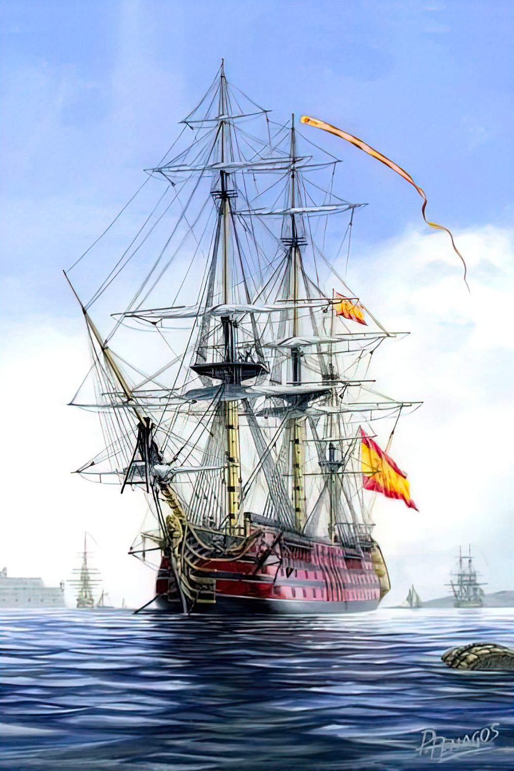 A pesar de sus defectos estructurales, tuvo una vida militar muy útil, ya que su sola presencia amedrentaba al enemigo. Por su valor emblemático fue objeto de ataques dirigidos para conseguir capturarlo, llegando casi a conseguirlo en la Batalla del Cabo de San Vicente y consiguiéndolo finalmente en la Batalla de Trafalgar, aunque fue una captura pírrica, ya que había sido tanta la resistencia que opuso y los daños recibidos que se hundió definitivamente dos días más tarde. Esta es la breve historia de uno de nuestros buques emblemáticos de nuestra Marina. En este artículo he evitado, en la medida de lo posible, expresarme con términos náuticos para mejor comprensión de los hombres de tierra, como yo mismo. Ruego a los verdaderos marinos que me perdonen.