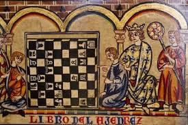 El ajedrez es un juego de origen incierto. La India y China se disputan el honor de ser los inventores de juego pero la verdad es que la primera referencia escrita se encuentra en Persia en un poema de polémica fecha llamado Chatrang nâmag. Cuando se escribió, no se sabe con certeza pero los expertos estima que fue entre los siglos VII y IX. Lo que sí se conoce con precisión es que el juego fue asimilado por los musulmanes cuando conquistaron Persia y de ahí viajó por el norte de África introduciéndose en la Península Ibérica y de ahí hacia Europa, donde llegó a ser muy popular entre la nobleza y también entre los dedicados al entretenimiento de las clases altas.