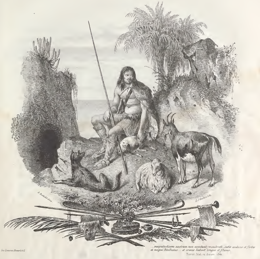Idealización de un indígena canario según el litógrafo A. de Saint-Aulaire
