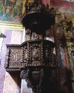 Púlpitos. Consistían en una especie de plataforma elevada en la parte lateral de la iglesia, desde donde el sacerdote pronunciaba sus homilías. Todos los púlpitos coloniales estaban bellamente tallados. Uno de los más hermosos es el de la parroquia de San Blas, en Cusco.
