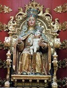 «Virgen de los remedios. El niño Jesús aparece desnudo, y el conjunto denota cierta rigidez. Esta es una de las primeras obras importadas por los jesuitas, siglo XVI. / Capilla de San Francisco Javier. Iglesia de San Pedro, Lima.