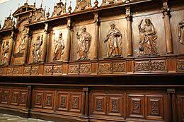 Sillas para coros. Las sillerías contaban con respaldares totalmente tallados con imágenes de santos o narraciones de historias sagradas. Las muestras más importantes que se conservan en Lima están en los conventos de San Francisco y Santo Domingo, y en la catedral de Lima.