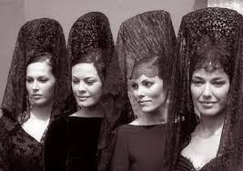 España sigue su andanza dividida entre las convenciones del pasado y la modernidad. La mantilla es una tradición que pasa de abuelas a madres e hijas. La mantilla bien podía ser como el abanico: un escudo o un arma para el libre y airoso desenvolvimiento de las damas en ciertos lugares. Porque en definitiva la mantilla tiene que ver con el garbo, con lo castizo, con nuestra intra historia.