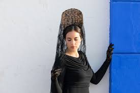 La mantilla española es una prenda de forma rectangular de color negro que aporta solemnidad a las mujeres que la lucen y que ha logrado convertirse a lo largo de la Historia de España en un símbolo de identidad nacional y cultural. También dicho adorno tiene una estrecha vinculación con actos de índole religiosa, y con ocasiones especiales de etiqueta.