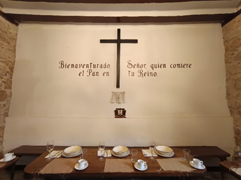 La comida se hacía en el refectorio, presidida por un vanitas , una calavera que recordaba la fragilidad de la vida, la brevedad del tiempo y la inevitabilidad de la muerte.