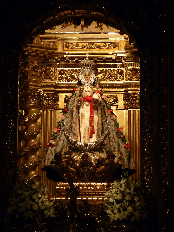Engalanada con lujosos ropajes, joyas y coronas, el color tostado de su cara el que ha motivado que sea cariñosamente conocida con el sobrenombre de <<La Morenica>>.