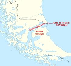 La marea comenzó a subir, liberando a las naos que, sin esperar el regreso de la chalupa, se alejaron mar adentro. Más tarde, ese mismo día, hallaron la verdadera boca del Estrecho y fondearon al abrigo del cabo de las Once Mil Vírgenes.