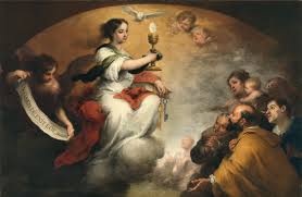 Los cuadros de Murillo, en forma de medio punto, representaban historias de la fundación de la Basílica de Santa María la Mayor de Roma los dos más grandes, situados en la nave central e iluminados por las claraboyas de la cúpula, y la Inmaculada Concepción y el Triunfo de la Eucaristía en los dos menores, dispuestos en las cabeceras de las naves laterales. Los cuatro salieron de España durante la Guerra de la Independencia y solo los dos primeros, destinados al Museo Napoleón, fueron devueltos en 1816, incorporándose más tarde al Museo del Prado, en tanto los dos restantes, tras sucesivas ventas, pertenecen al Museo del Louvre, el que representa a la Inmaculada, y a una colección particular inglesa el Triunfo de la Eucaristía.
