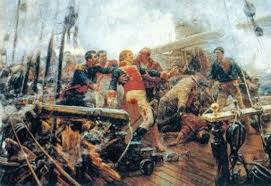 Pero en el cabo de Finisterre se topó con la escuadra del almirante Calder, con la que se entabló combate, siendo derrotados los españoles por la desidia y mal gobierno del comandante en jefe de la escuadra combinada, Villeneuve. Al enterarse el Emperador de los franceses de lo acaecido en el combate dijo: Los españoles se han portado como leones, pero de su almirante sólo se le oyeron improperios.