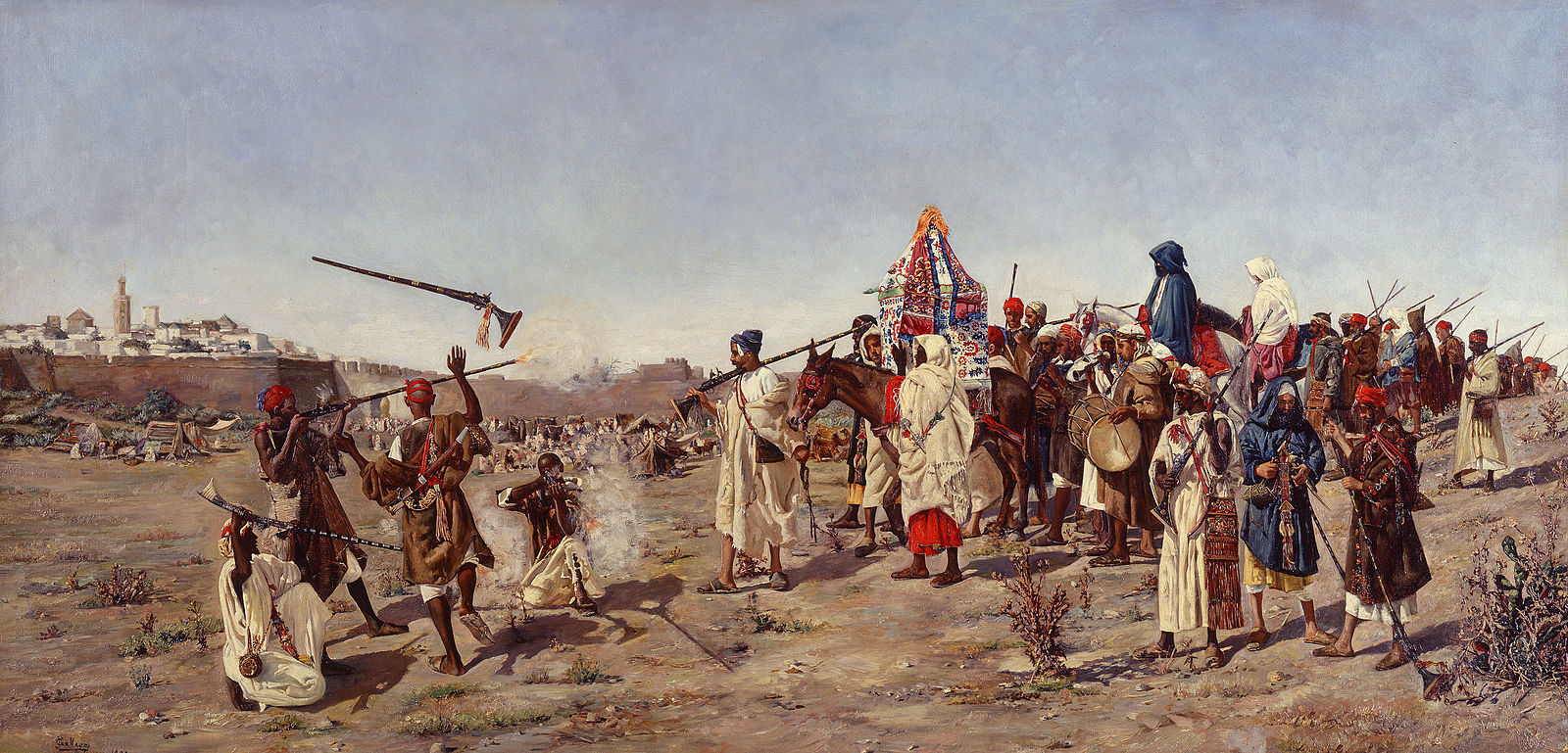 Posteriormente, Gallegos viajó también a Túnez y Marruecos, atraído por la luz y el sugestivo ambiente de estas exóticas tierras. En 1878 pintó Casamiento árabe, cuadro comprado por el Estado en 1882. En el harén, confirma su prestigio en Jerez al ser expuesta en su Academia local.