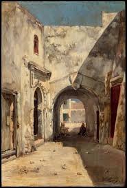 En 1879 realizó un breve viaje por Marruecos, junto a Salvador Sánchez Barbudo, centrándose en la ciudad de Tánger, para captar la vida marroquí y cuyas costumbres y personajes quedarán reflejados en su obra, como se aprecia en Cortejo nupcial en Marruecos, Fiesta de moros o Plaza de Tánger. Uno de los cuadros de grandes dimensiones que pintó en la Ciudad Eterna, Botín de guerra, fue premiado con segunda medalla en la Exposición Nacional de 1884. De vuelta a Roma se dedicó a practicar una pintura comercial de gran éxito.